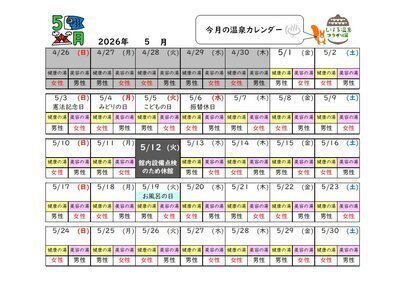 5月の温泉入浴カレンダー☆